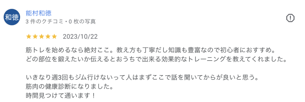筋トレを始めるなら絶対ここ。教え方も丁寧だし知識も豊富なので初心者におすすめ。